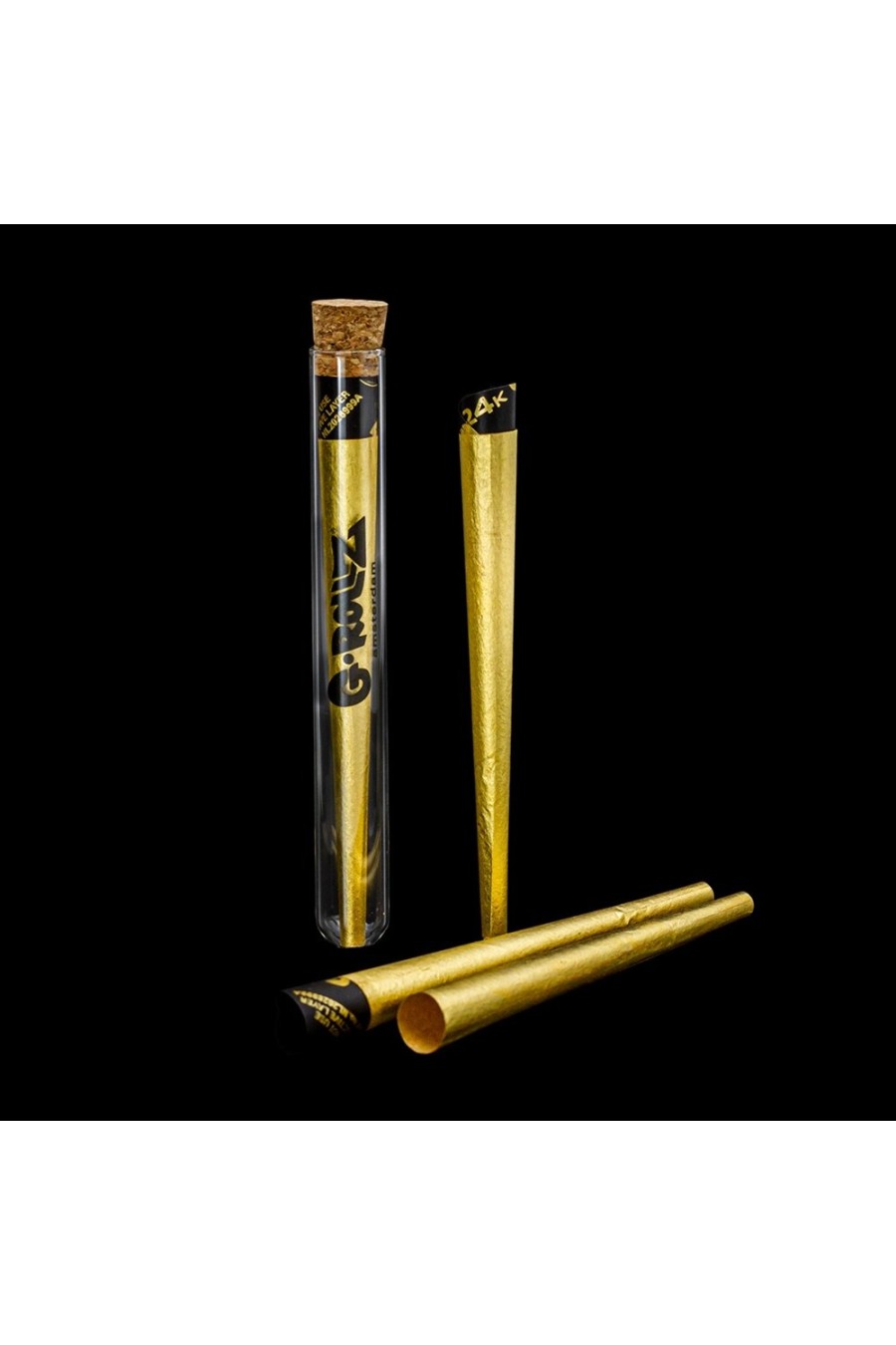 Élevez votre expérience de préparation avec le G-Rollz Golden Cone, l'accessoire de luxe par excellence. Ce cône pré-roulé est fabriqué avec de véritables feuilles d'or 24 carats, offrant une combustion lente, régulière et une esthétique incomparable. Conçu pour ceux qui ne font aucun compromis sur la qualité, il ne contient aucun additif nocif et respecte la pureté de vos produits. Sa structure robuste conserve sa forme lors du remplissage, garantissant une utilisation fluide et luxueuse du début à la fin. Présenté dans un étui de protection individuel pour préserver son éclat, chaque cône est accompagné d'un certificat d'authenticité, confirmant un produit G-Rollz Amsterdam officiel haut de gamme.