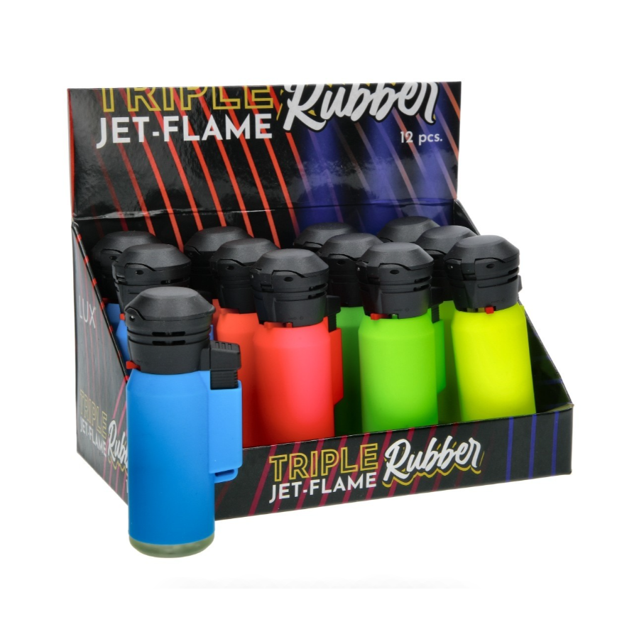 Le briquet chalumeau Lux Soft triple flamme est un briquet tempête rechargeable au butane, doté de trois jets pour une flamme puissante et résistante au vent. Son revêtement soft touch et sa flamme réglable garantissent confort et précision. Idéal pour les accessoires fumeurs et un usage quotidien.