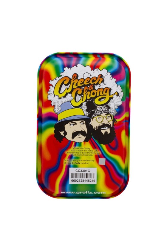 Le plateau de roulage G-Rollz Cheech & Chong 'Trippy' (17,5 x 27,5 cm) combine robustesse et design psychédélique. Sa structure en métal avec bords incurvés facilite la préparation et évite les pertes. Ce modèle Medium, issu de la collection officielle Amsterdam, est à la fois stable et compact. Un accessoire durable, facile à nettoyer, parfait pour organiser votre espace avec style.
