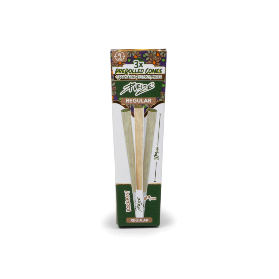 PURIZE® Cones pré-roulés 🌿 Pack de 3 Regular Size. Papier non blanchi, filtres charbon actif ø9 mm, 109 mm de long. Prêt à l’emploi et qualité premium.