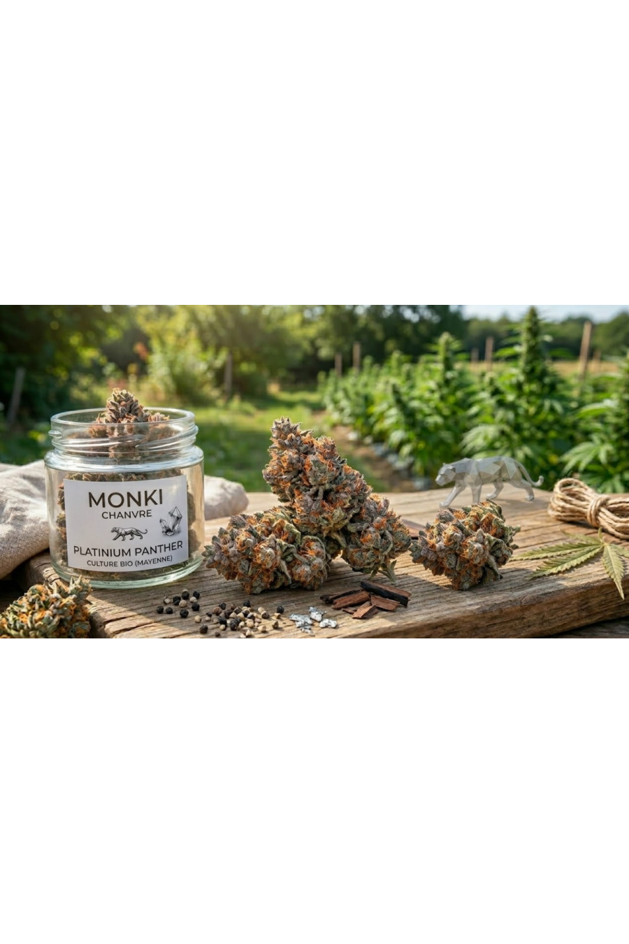 La fleur de CBD Platinium Panther de Monki est une variété outdoor française bio. Son profil unique mêle des arômes de fuel, de poivre et de bois précieux. Issue d'une culture artisanale écoresponsable, elle garantit un taux de THC inférieur à 0,3 % pour une détente haut de gamme et naturelle. Une fleur de caractère pour les amateurs de profils intenses et authentiques.