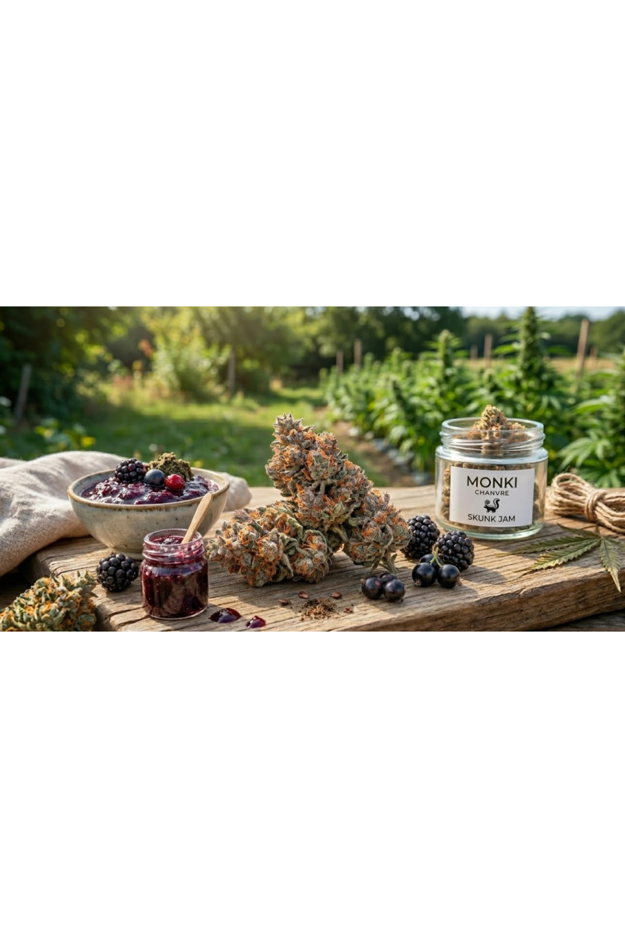 La fleur de CBD Skunk Jam de Monki est une variété outdoor française certifiée bio. Riche en terpènes terreux et fruités, elle déploie des arômes de musc et de confiture de baies. Sa culture artisanale et écoresponsable assure un taux de THC inférieur à 0,3 % pour une relaxation claire et fonctionnelle. Un choix incontournable pour les amateurs de fleurs de chanvre authentiques et savoureuses.