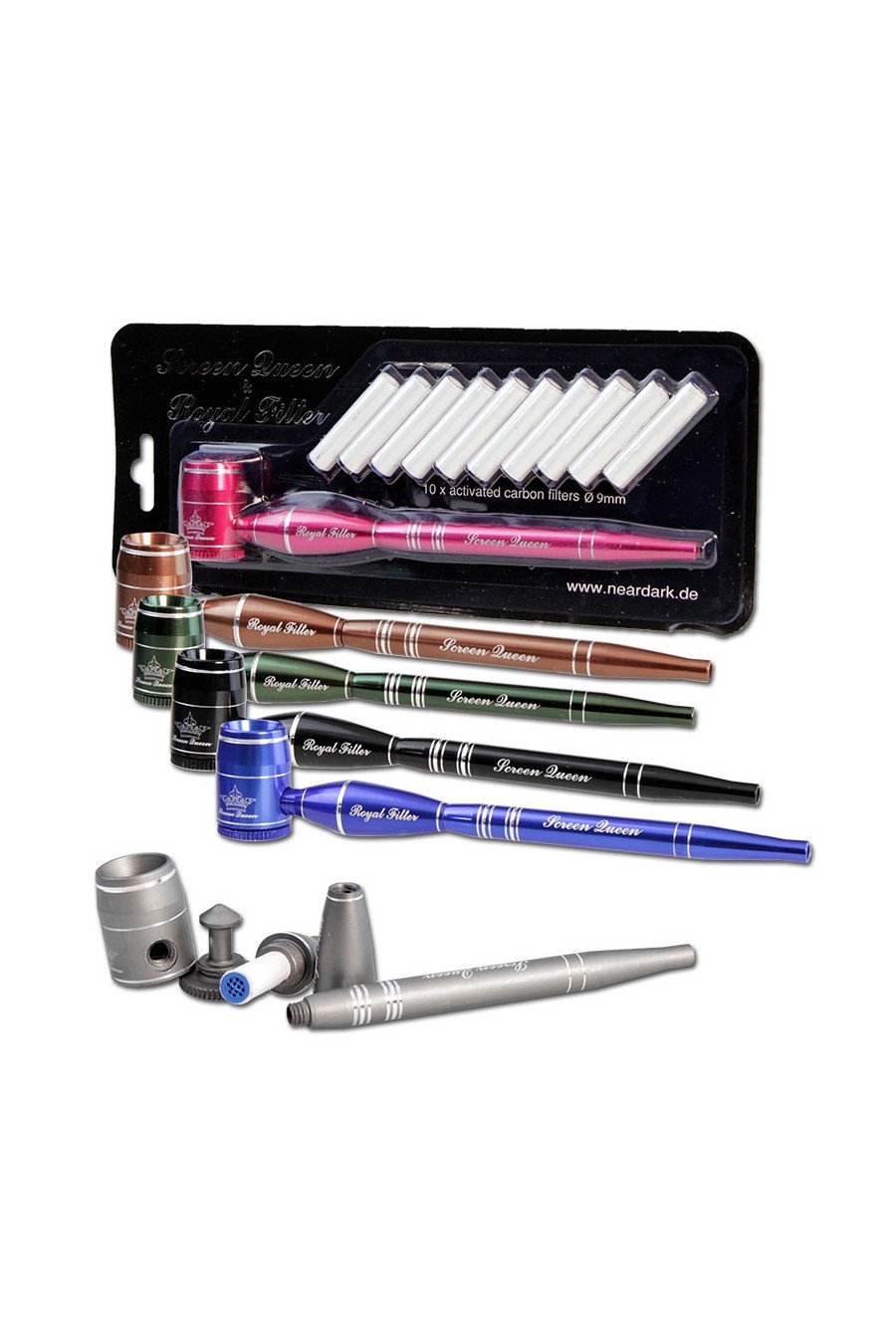 Découvrez la Pipe Screen Queen avec adaptateur filtre royal. Cet ensemble complet associe une pipe élégante à une grille intégré de qualité supérieure et un adaptateur filtre au charbon actif pour une filtration optimale.
